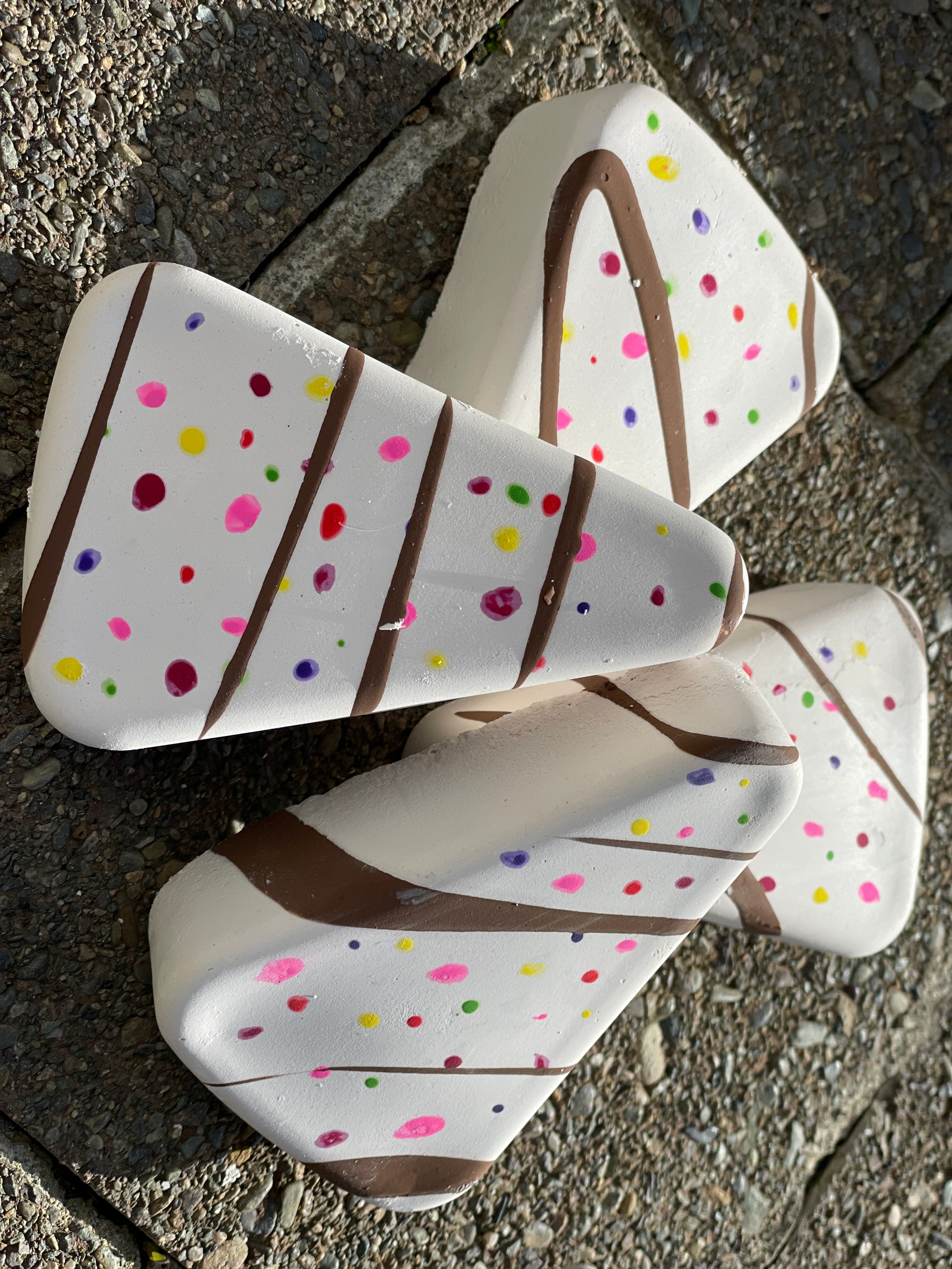 These cake slice chalks look good enough to eat, with frosting like drizzle and colorful sprinkles. Perfect for birthday parties, gifts, or just adding a little fun to outdoor creativity!