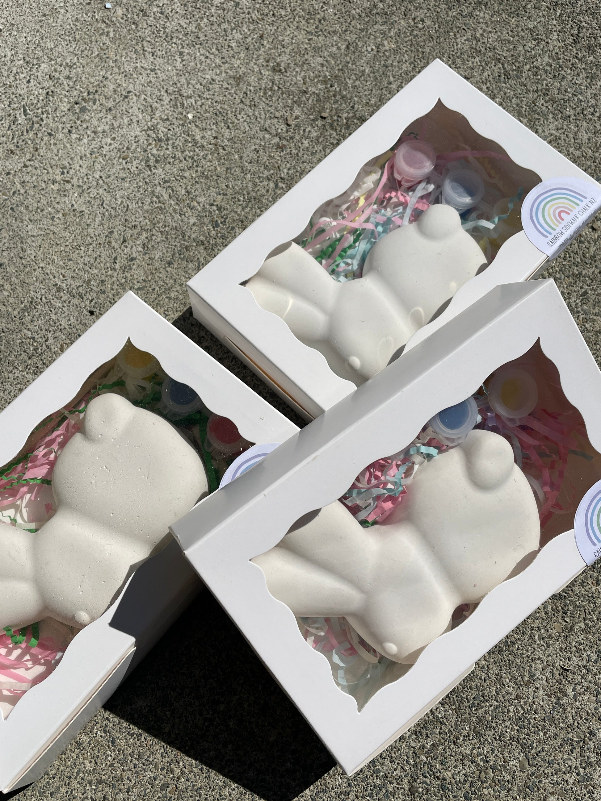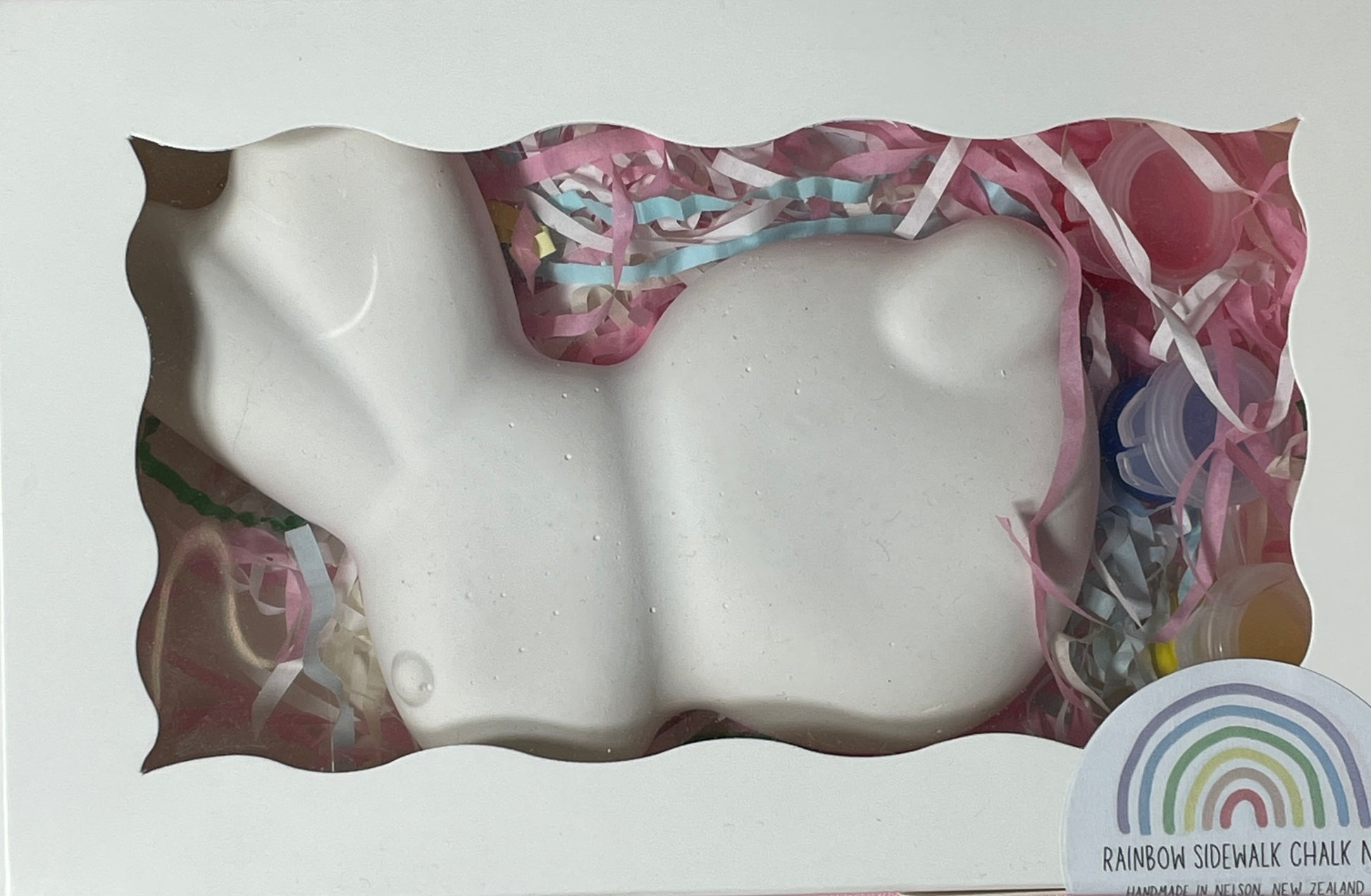 This two in one set is a bonus! Create your own adorable bunny with this DIY paint-your-own chalk set! Includes one large white bunny, primary colours paint pots, and a brush perfect for craft lovers of all ages. Once dry you can then doodle away on the sidewalk. Let your creativity hop to life!